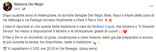 5 gennaio: continua la tradizione del Pan e Vin
